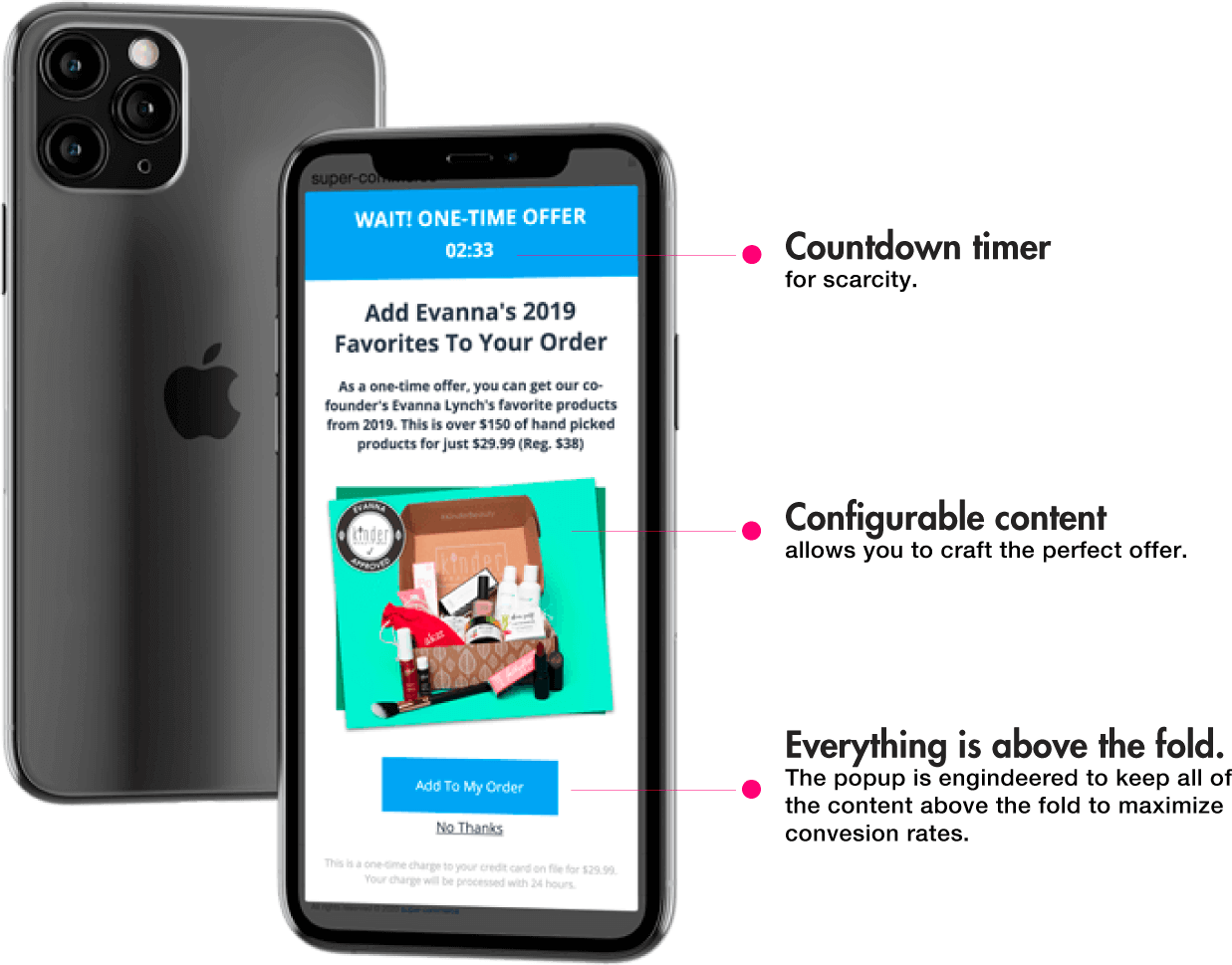 You can take each upsell a step further with detailed customizations using our drag and drop builder.